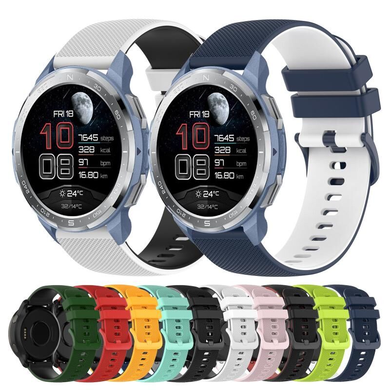 For Honor Watch GS Pro 22mm Checkered Two-Color Silicone Watch Band(Black+Red)