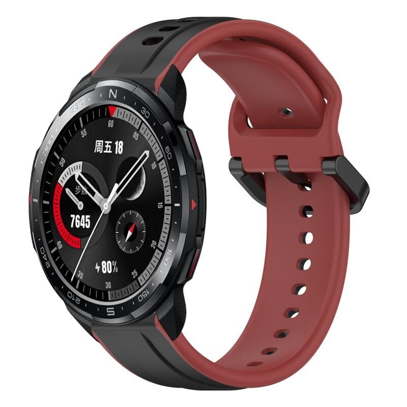 For Honor Watch GS Pro 22mm Convex Loop Two-Color Silicone Watch Band(Black+Red)