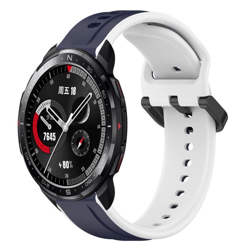 For Honor Watch GS Pro 22mm Convex Loop Two-Color Silicone Watch Band(Midnight Blue+White)