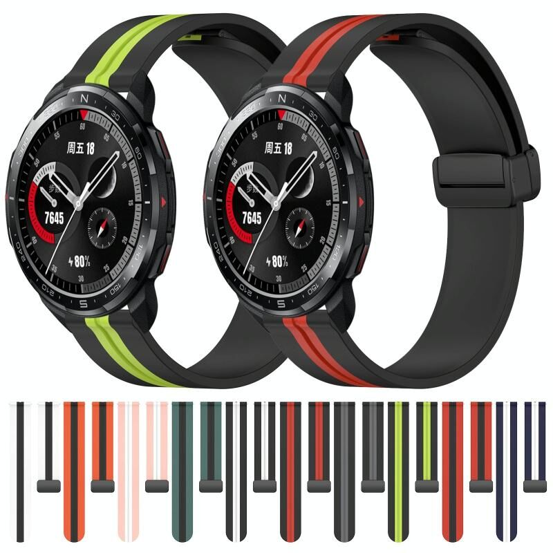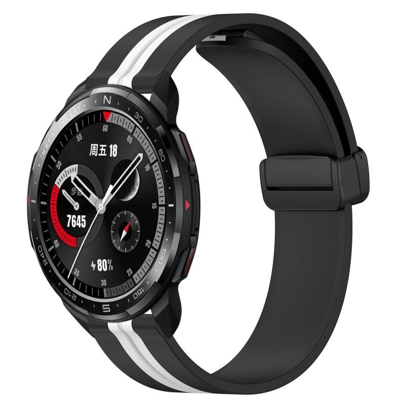Για το Honor Watch GS Pro 22mm Πτυσσόμενο μαγνητικό κούμπωμα ζώνη ρολογιού σιλικόνης (μαύρο+λευκό)