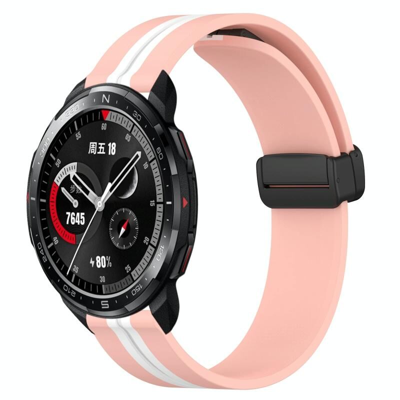 Για το Honor Watch GS Pro 22mm Πτυσσόμενο μαγνητικό κούμπωμα ζώνη ρολογιού σιλικόνης (ροζ+λευκό)
