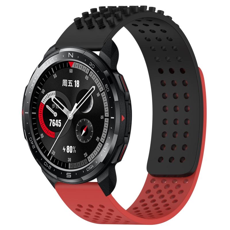 For Honor Watch GS Pro 22mm Holes Breathable 3D Dots Silicone Watch Band(Black+Red)