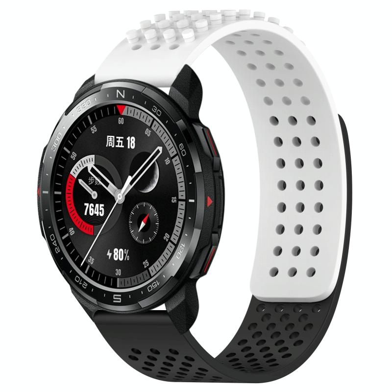 For Honor Watch GS Pro 22mm Holes Breathable 3D Dots Silicone Watch Band(White+Black)