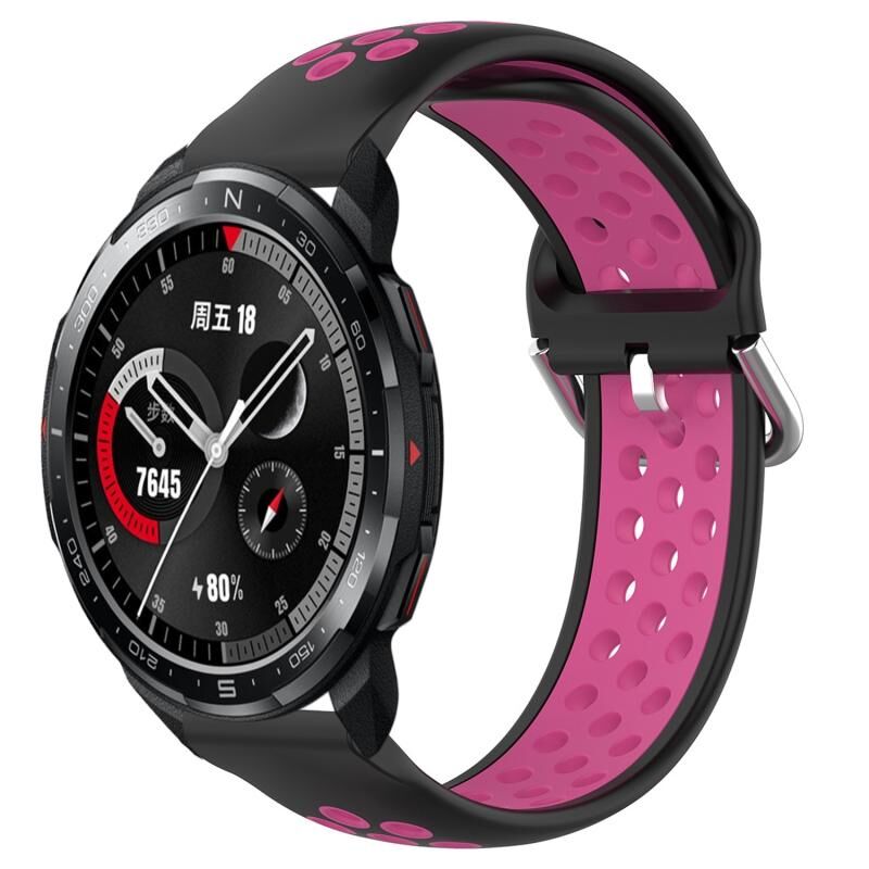Για το Honor Watch GS Pro 22mm διάτρητη αναπνεύσιμη αθλητική ζώνη ρολογιού σιλικόνης (μαύρο + ροζ κόκκινο)