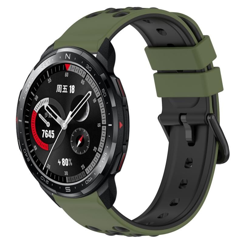 Για το Honor Watch GS Pro 22mm Δύο χρωμάτων πορώδη ζώνη ρολογιού σιλικόνης (πράσινο στρατού + μαύρο)