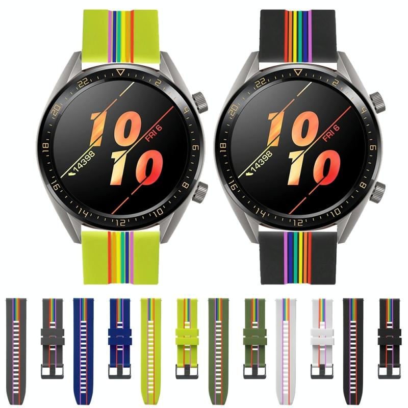 For Honor Watch GS Pro Rainbow Silicone Watch Band (Black)
