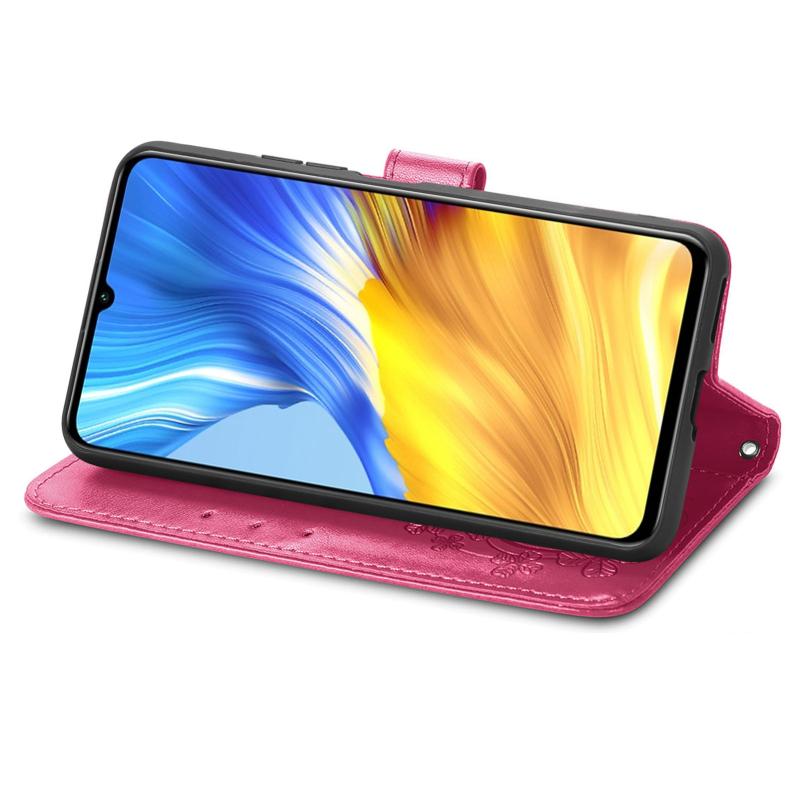 For Honor X10 Max 5G Four-leaf Clasp Embossed Buckle Leather Phone Case(Magenta)