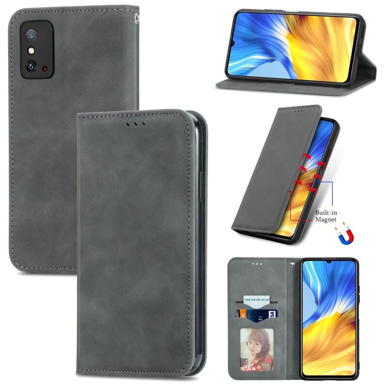 Για Honor X10 Max 5G Ρετρό δέρμα αίσθηση μαγνητική οριζόντια Flip δέρμα τηλέφωνο υπόθεση (γκρι)