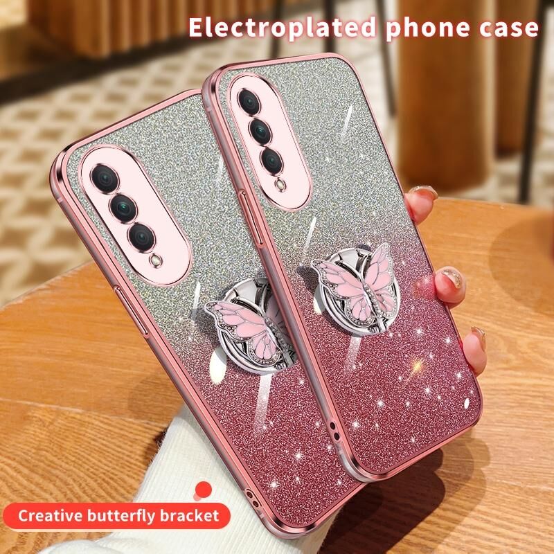 Θήκη κινητού τηλεφώνου TPU με σχέδιο πεταλούδας από γκλίτερ και διαβαθμισμένο χρώμα για Honor X20 SE (Ροζ)