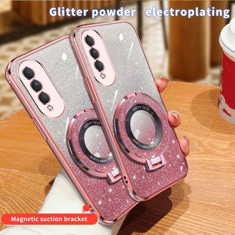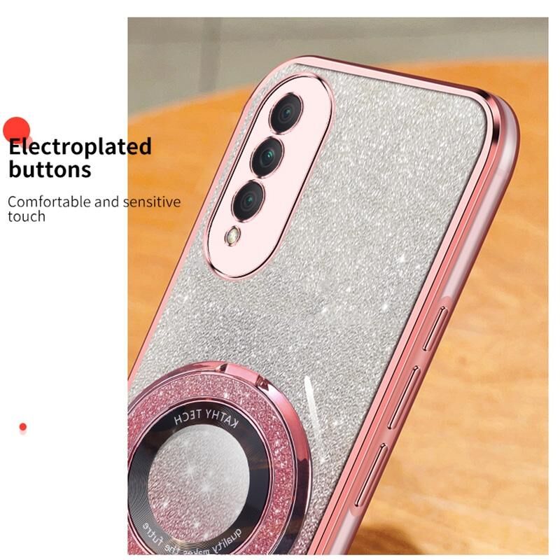 Για Honor X20 SE επιμεταλλωμένο διαβάθμιση Glitter στρογγυλό κάτοχος TPU τηλέφωνο υπόθεση (ασημί)