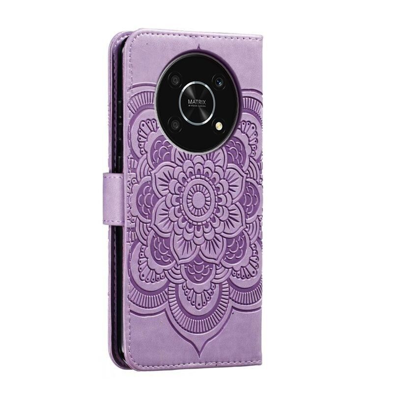 Για Honor X30 5G Sun Mandala ανάγλυφο μοτίβο τηλέφωνο δερμάτινη θήκη (μωβ)