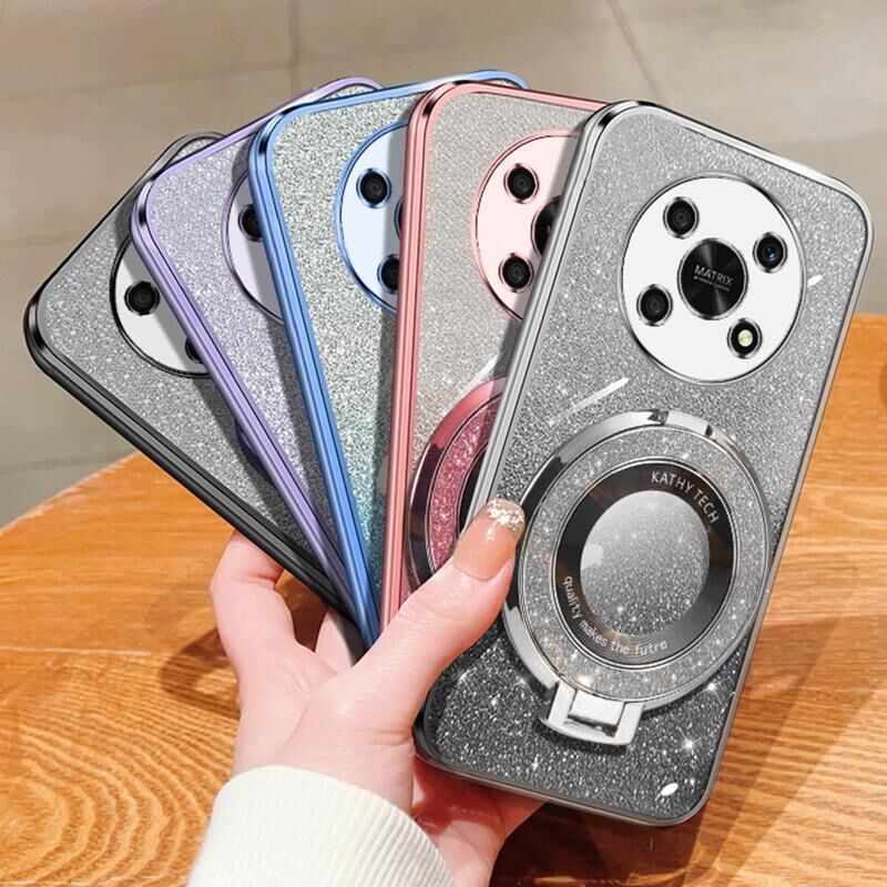 Θήκη κινητού τηλεφώνου TPU με στρογγυλό στήριγμα, επιμετάλλωση, διαβαθμισμένη λάμψη για Honor X30 5G / X9 4G (Ροζ)