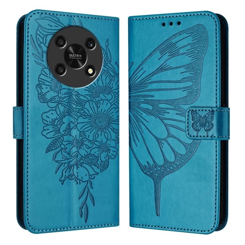 Για Honor X30 5G/X9 4G/X9 5G ανάγλυφη πεταλούδα δερμάτινη θήκη τηλεφώνου (Μπλε)
