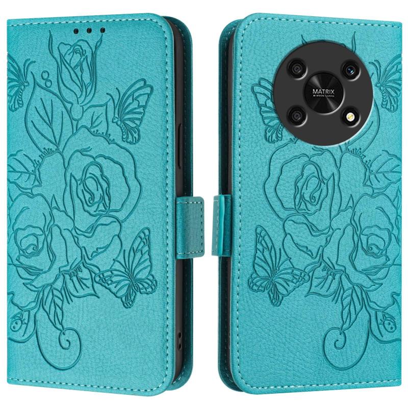 For Honor X30 5G / X9 5G / 4G Embossed Rose RFID Anti-theft Leather Phone Case(Light Blue)