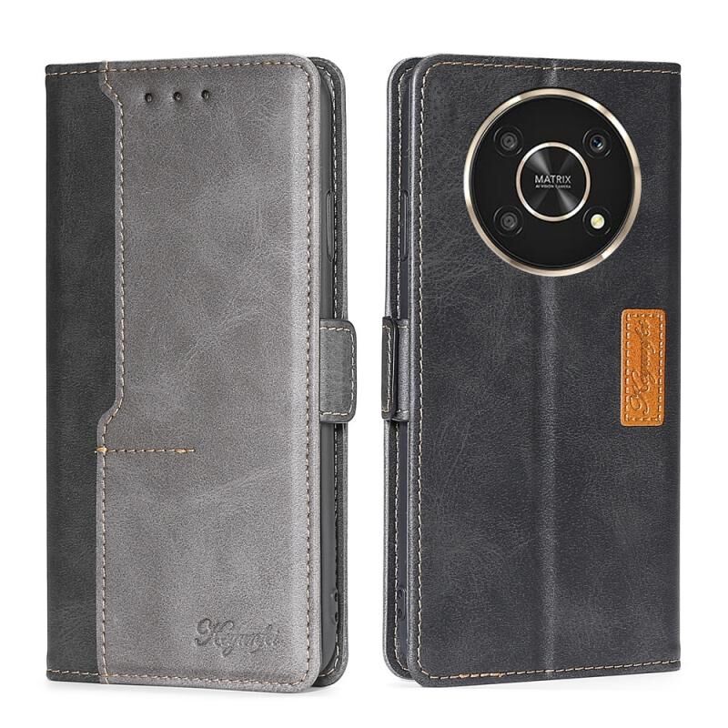 Για Honor X30 αντίθεση χρώμα πλευρά πόρπη δερμάτινη θήκη τηλεφώνου υπόθεση (Μαύρο + Γκρι)