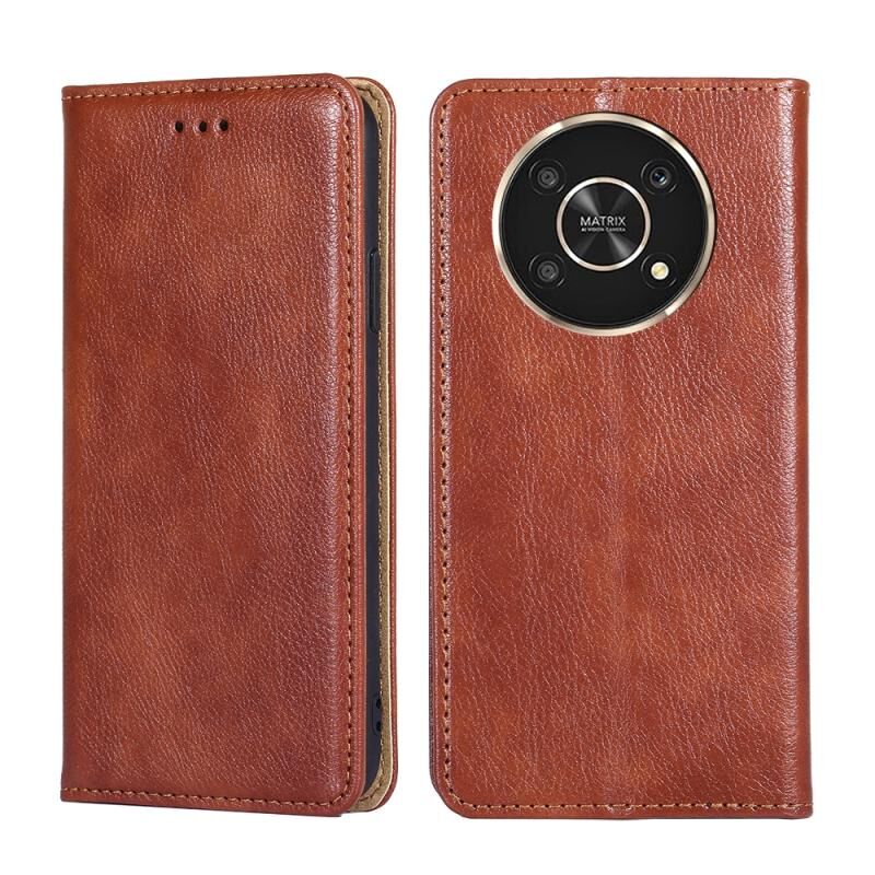 Για Honor X30 Γυαλιστερό λάδι στερεό χρώμα μαγνητικό Flip δέρμα τηλέφωνο υπόθεση (καφέ)