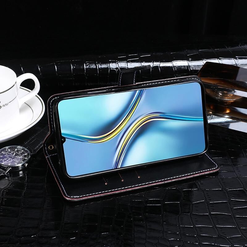 Θήκη τηλεφώνου δερμάτινη, οριζόντια αναδιπλούμενη για Honor X30 Max idewei, με υφή κροκόδειλου (Μαύρο) (idewei)