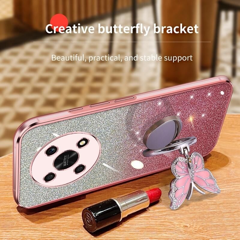 Θήκη κινητού τηλεφώνου TPU με σχέδιο πεταλούδας από γκλίτερ και διαβαθμισμένο χρώμα για Honor X30 (Ροζ)