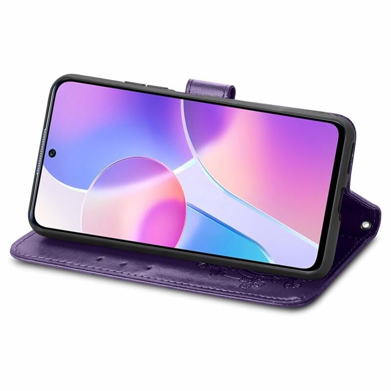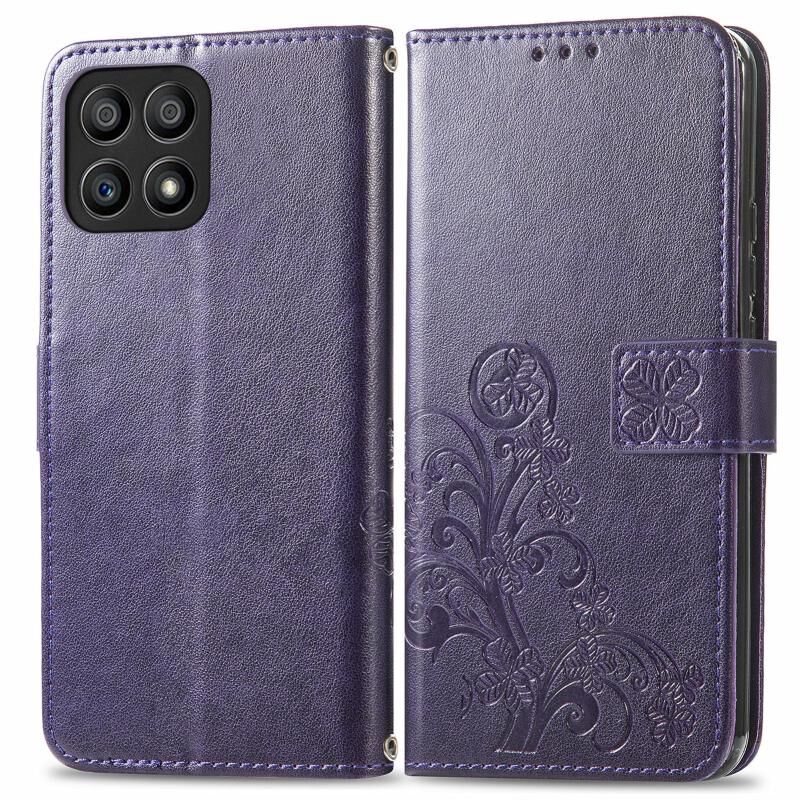Για Honor X30i Τέσσερα φύλλα κούμπωμα ανάγλυφο αγκράφα δερμάτινη θήκη τηλεφώνου (Μωβ)