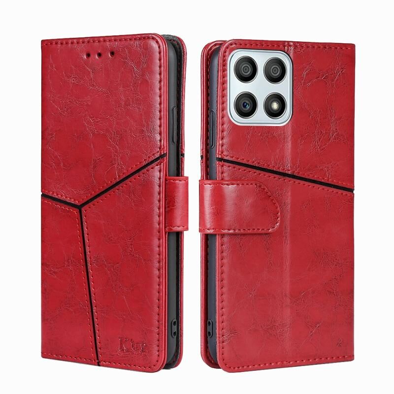 Για Honor X30i Γεωμετρική ραφή οριζόντια Flip υπόθεση τηλεφώνου δέρμα (κόκκινο)