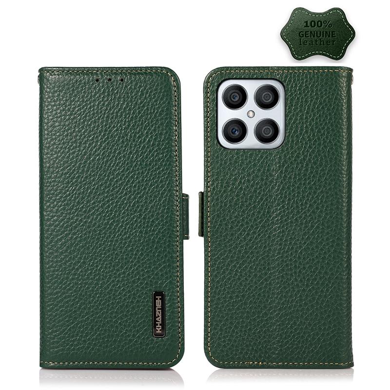 For Honor X30i / Play6T Pro / X8 KHAZNEH Side-Magnetic Litchi Genuine Leather RFID Phone Case(Green)