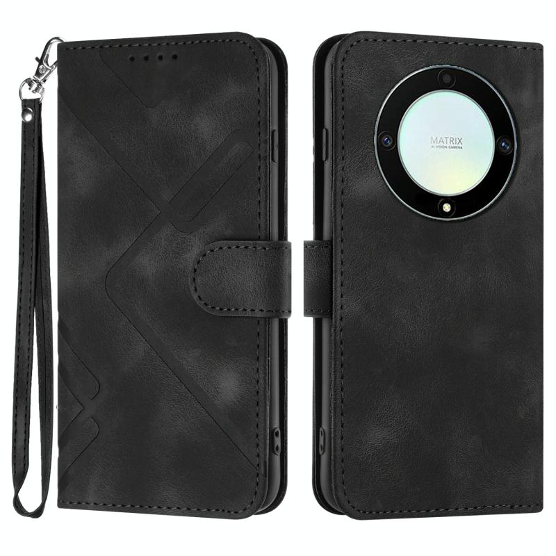 Θήκη τηλεφώνου Honor X40 5G με υφή δέρματος και σχέδιο γραμμών (Μαύρο)