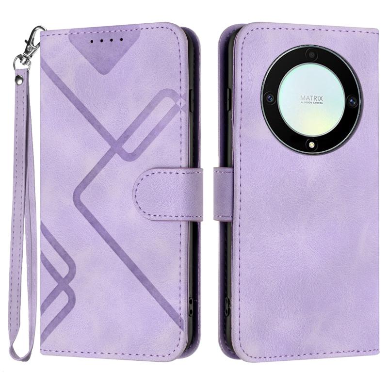 Θήκη τηλεφώνου Honor X40 5G με υφή δέρματος και σχέδιο γραμμών (ανοιχτό μωβ)