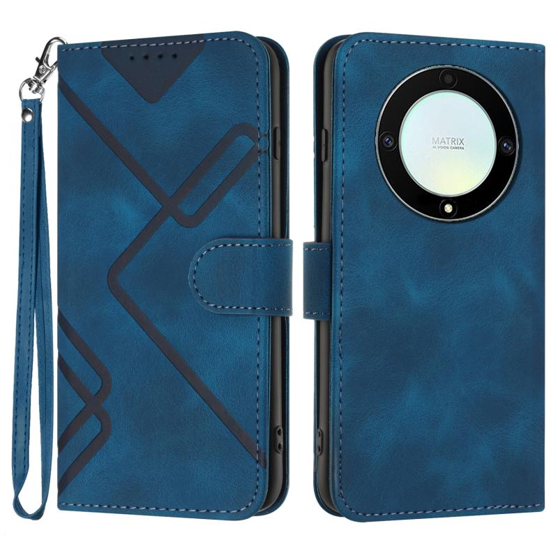 Θήκη τηλεφώνου Honor X40 5G με υφή δέρματος και σχέδιο γραμμών (Βασιλικό μπλε)