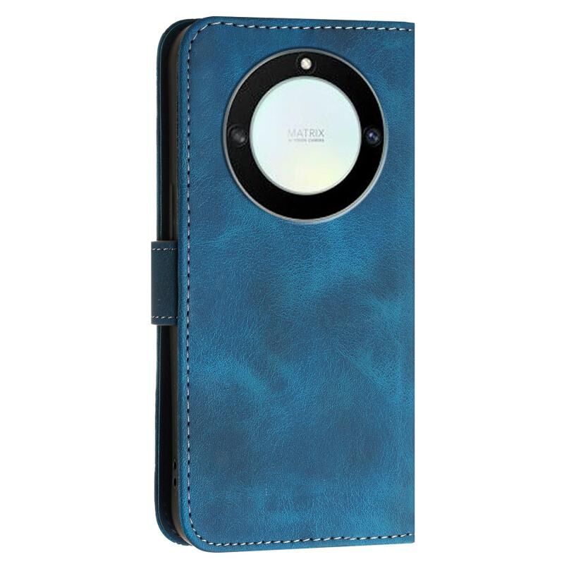 Θήκη τηλεφώνου από δέρμα με ανάγλυφο σχέδιο πλέγματος και πεταλούδας για Honor X40 5G / X9a 5G με κορδόνι (Σκούρο μπλε)