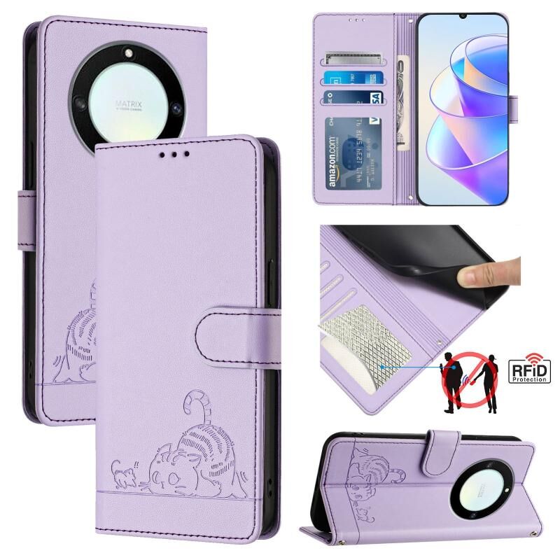 Θήκη τηλεφώνου από δέρμα με ανάγλυφο σχέδιο γάτας και ποντικού για Honor X40 5G/X9a 5G/Magic5 Lite με κορδόνι (Μαύρο)