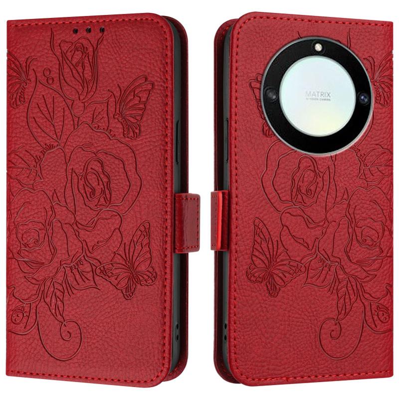 For Honor X40 5G / X9a 5G / Magic5 Lite Embossed Rose RFID Anti-theft Leather Phone Case(Red)