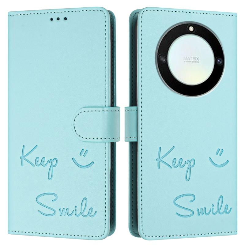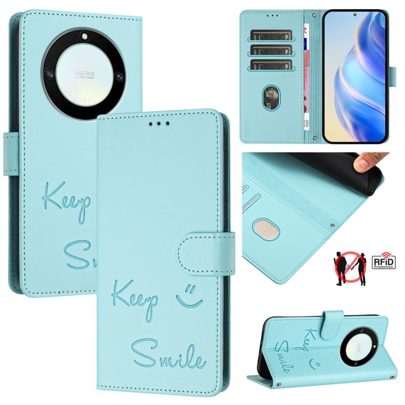 For Honor X40 5G/X9a 5G/Magic5 Lite Smile Embossing RFID Leather Phone Case(Mint Green)