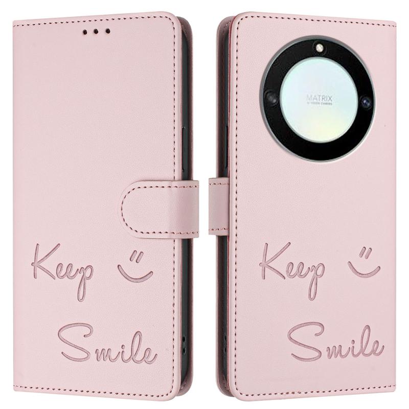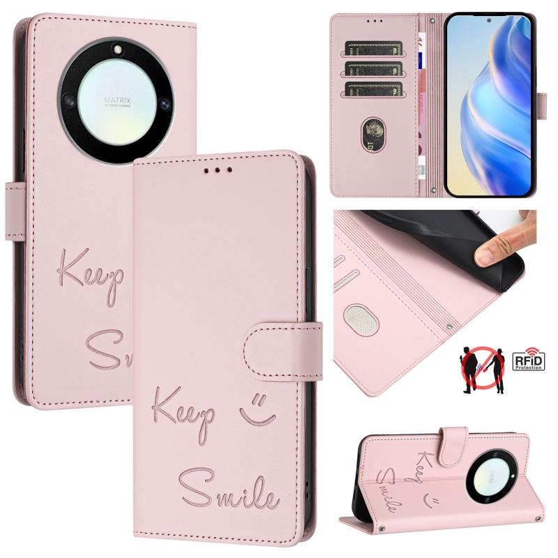 For Honor X40 5G/X9a 5G/Magic5 Lite Smile Embossing RFID Leather Phone Case(Pink)