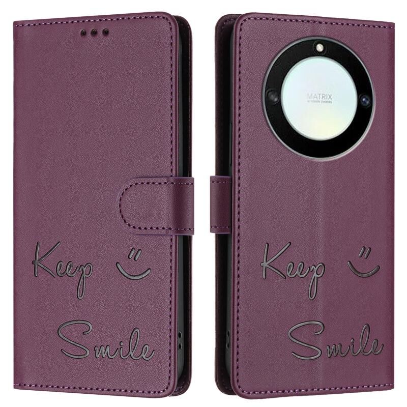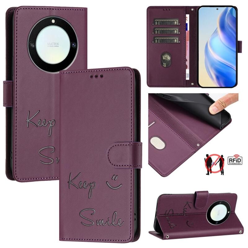 Θήκη τηλεφώνου από δέρμα με ανάγλυφο χαμόγελο RFID για Honor X40 5G/X9a 5G/Magic5 Lite (Μωβ)