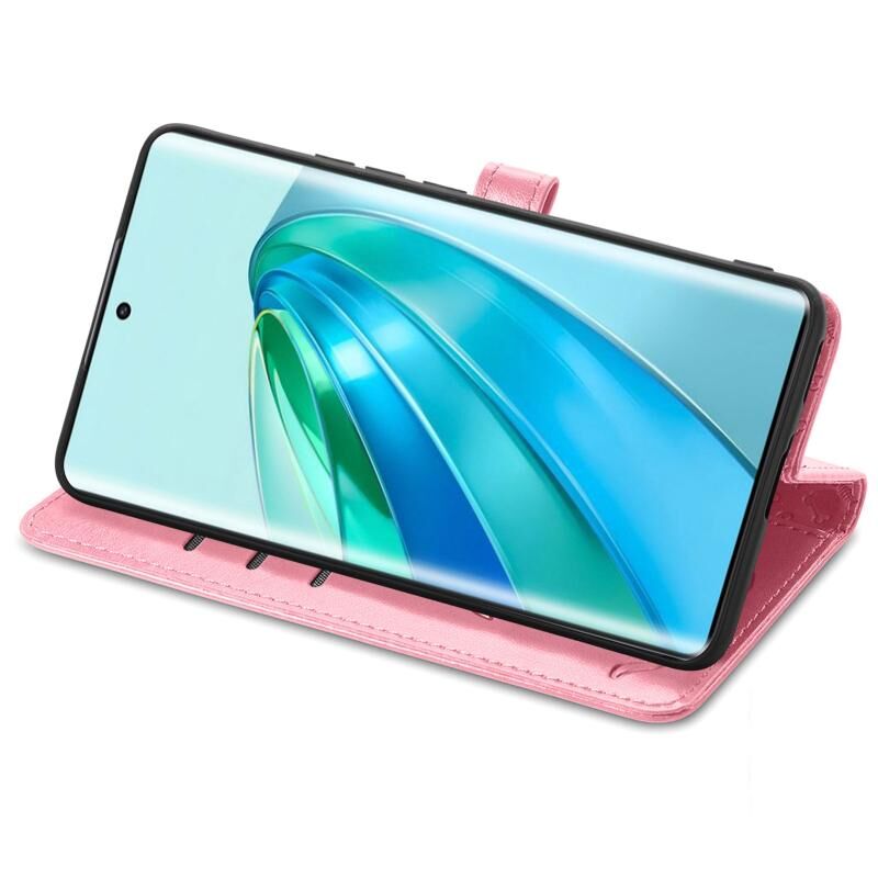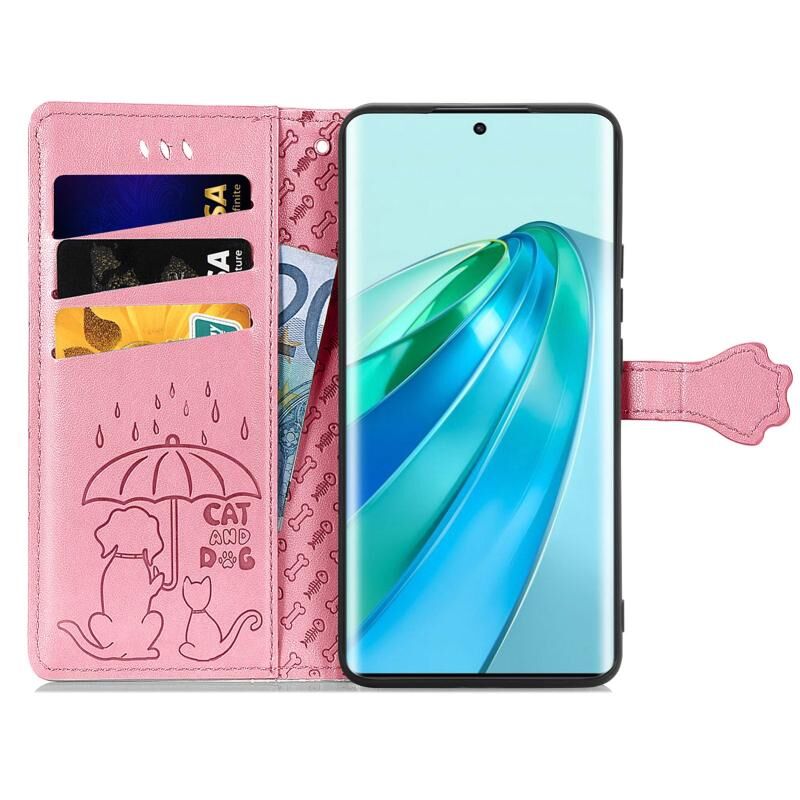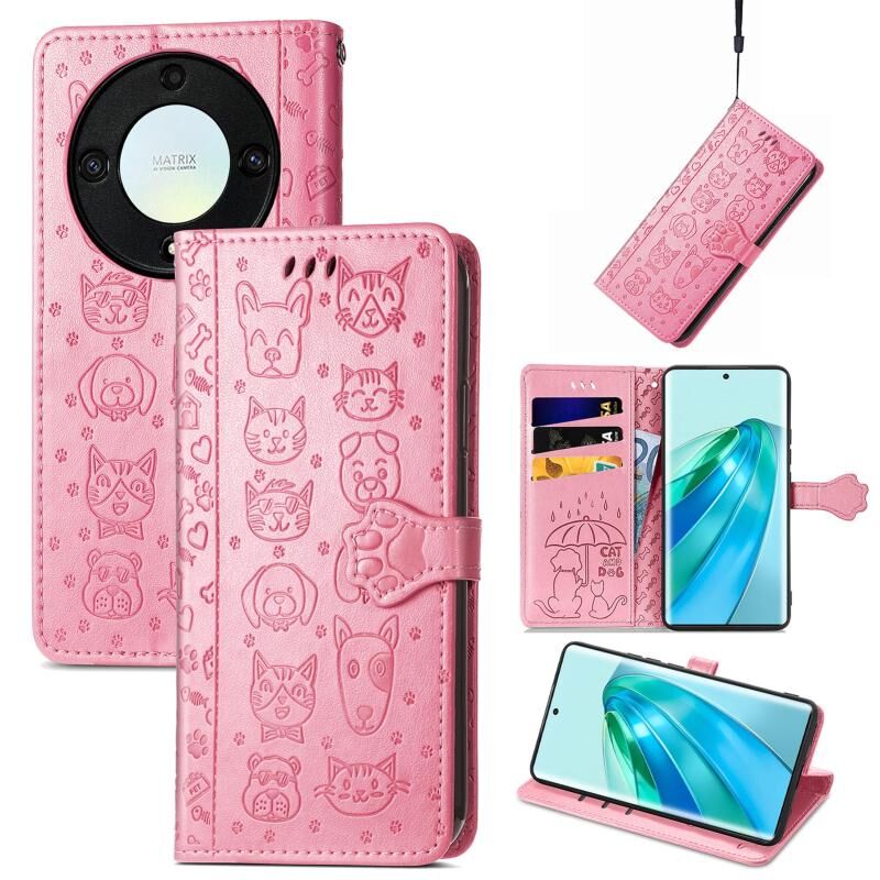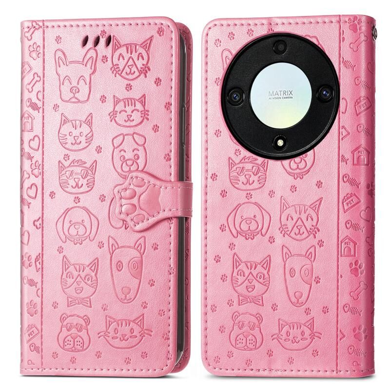 Θήκη τηλεφώνου από δέρμα με ανάγλυφα σχέδια χαριτωμένων γάτας και σκύλου για Honor X40 (Μωβ)