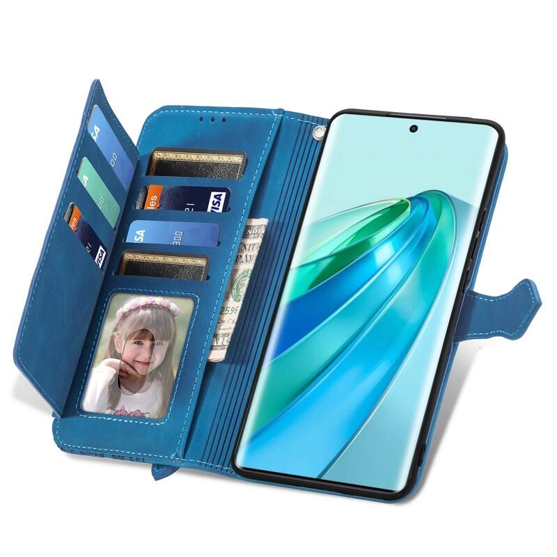 Για Honor X40 ανάγλυφο λουλούδι φερμουάρ δερμάτινη θήκη τηλεφώνου (Μπλε)