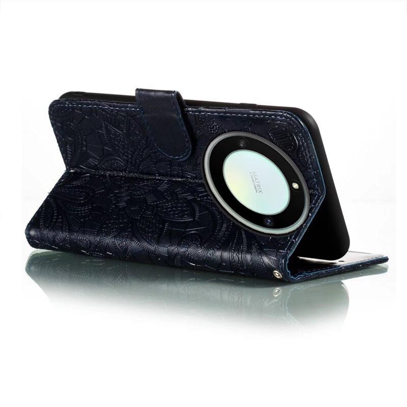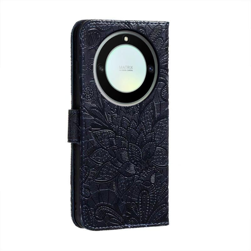 Για Honor X40 Lace λουλούδι ανάγλυφο Flip υπόθεση τηλεφώνου δέρμα (σκούρο μπλε)