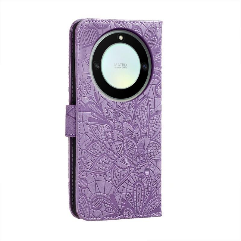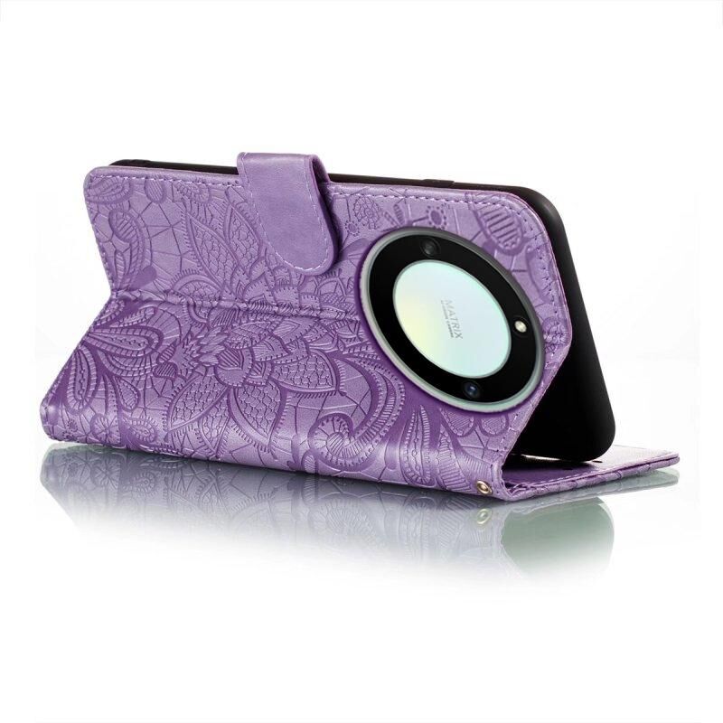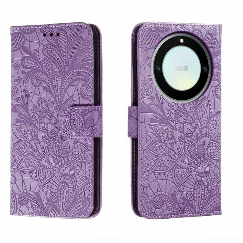Για Honor X40 Lace λουλούδι ανάγλυφο Flip υπόθεση τηλεφώνου δέρμα (μωβ)