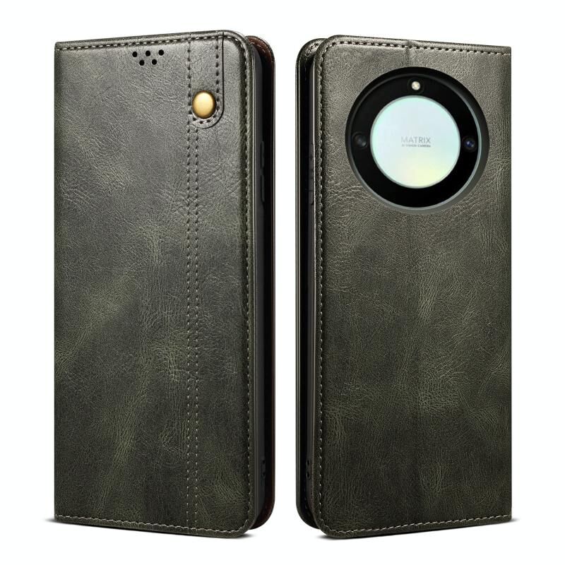 Θήκη τηλεφώνου Honor X40 από δέρμα με υφή λαδιού και τρελού αλόγου (Μαύρο)