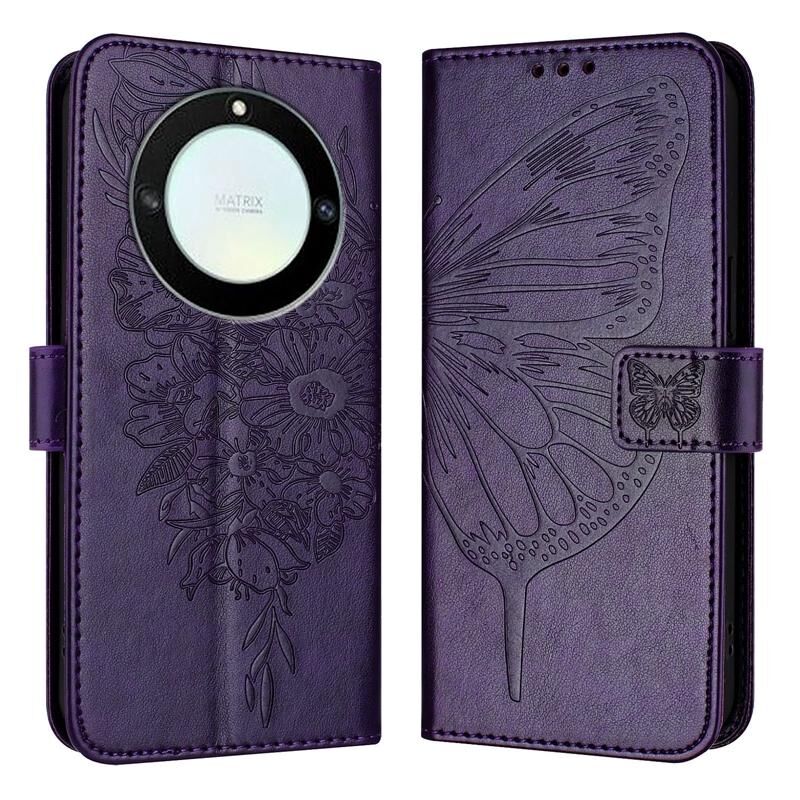 Για Honor X40 / X9a / Magic5 Lite ανάγλυφη πεταλούδα δερμάτινη θήκη τηλεφώνου (σκούρο μοβ)