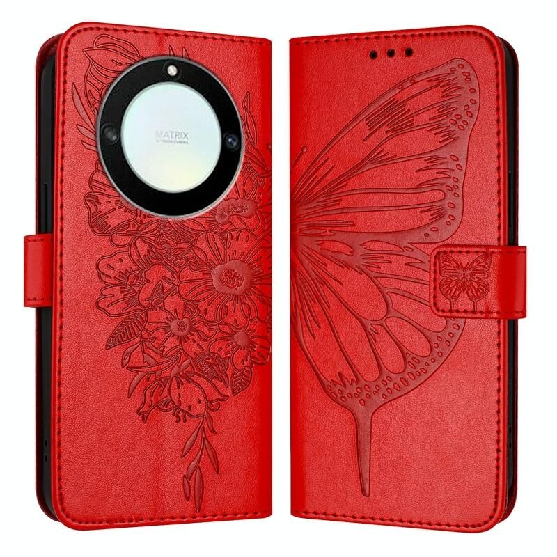 Για Honor X40 / X9a / Magic5 Lite ανάγλυφη πεταλούδα δερμάτινη θήκη τηλεφώνου (κόκκινο)
