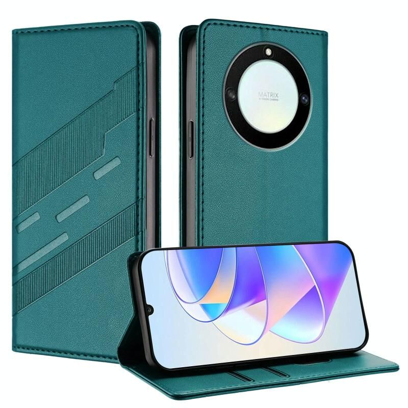 Θήκη τηλεφώνου από δέρμα retro, πολυλειτουργική με ανάγλυφο σχέδιο για Honor X40 / X9a / Magic5 Lite (Μαύρο)