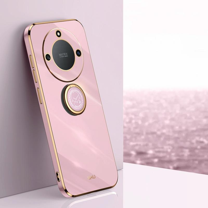 Θήκη κινητού τηλεφώνου For Honor X40 XINLI με ευθεία άκρη, ηλεκτρολυτική επίστρωση TPU και δακτύλιο στήριξης (Κεραμιδί μωβ)