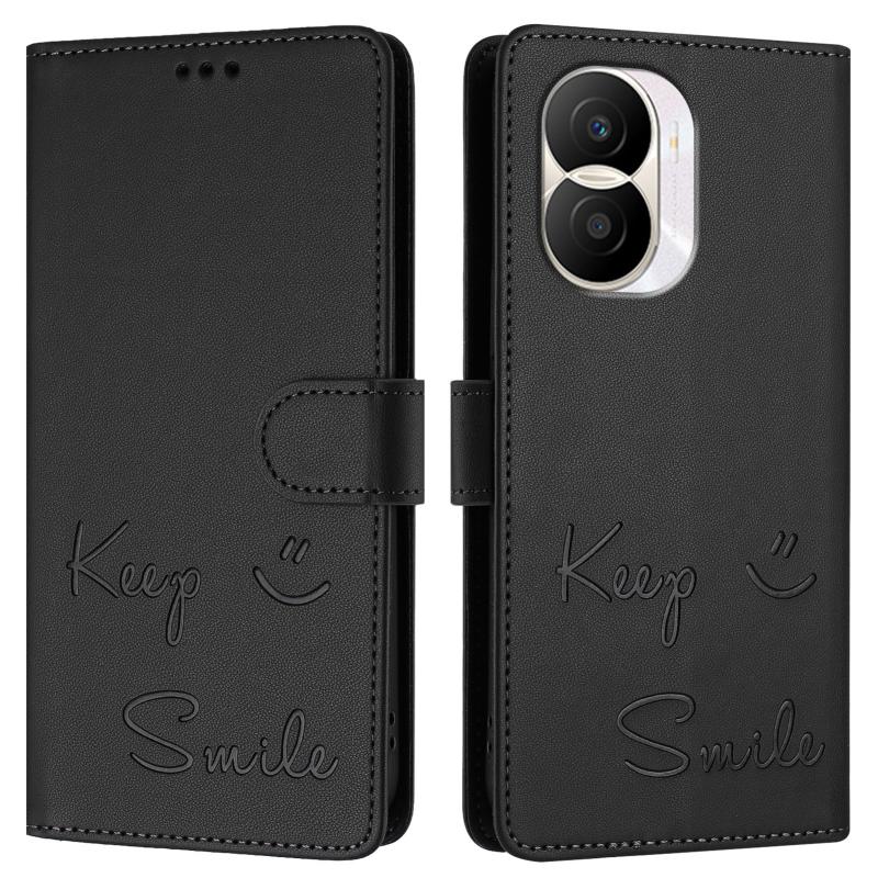 For Honor X40i 5G Smile Embossing RFID Leather Phone Case(Black)