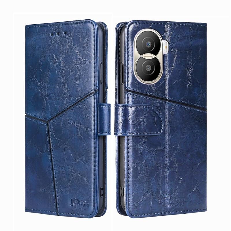 Για Honor X40i Γεωμετρική ραφή δερμάτινη θήκη τηλεφώνου (μπλε)