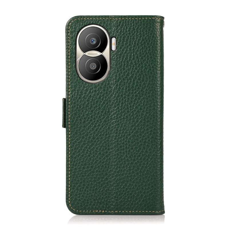 Θήκη κινητού τηλεφώνου Honor X40i KHAZNEH με μαγνητική πλευρά, γνήσιο δέρμα με υφή λitchi και προστασία RFID (Μαύρο)