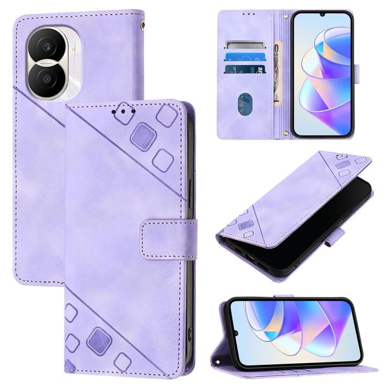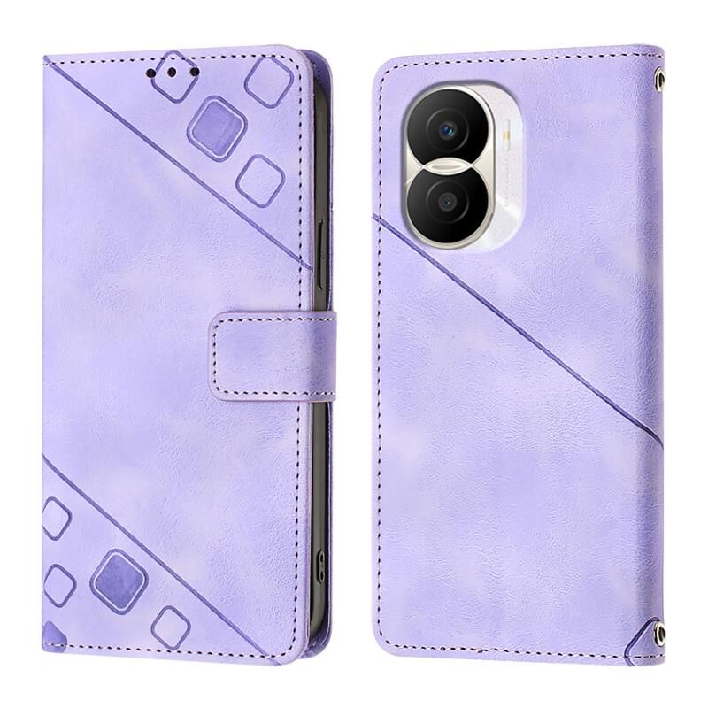 Θήκη τηλεφώνου Honor X40i με υφή δέρματος και ανάγλυφο σχέδιο (Ανοιχτό Μωβ)