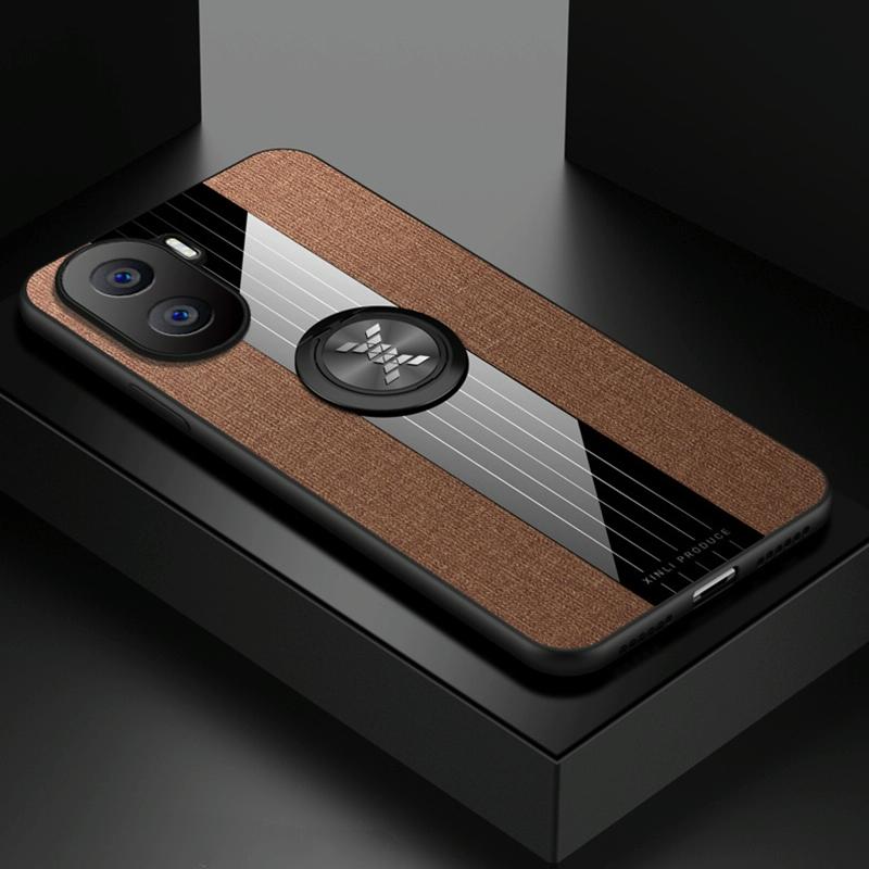 Θήκη κινητού τηλεφώνου TPU με υφή υφάσματος Stitching Cloth για Honor X40i XINLI με δακτύλιο στήριξης (Κόκκινο) (Καφέ)