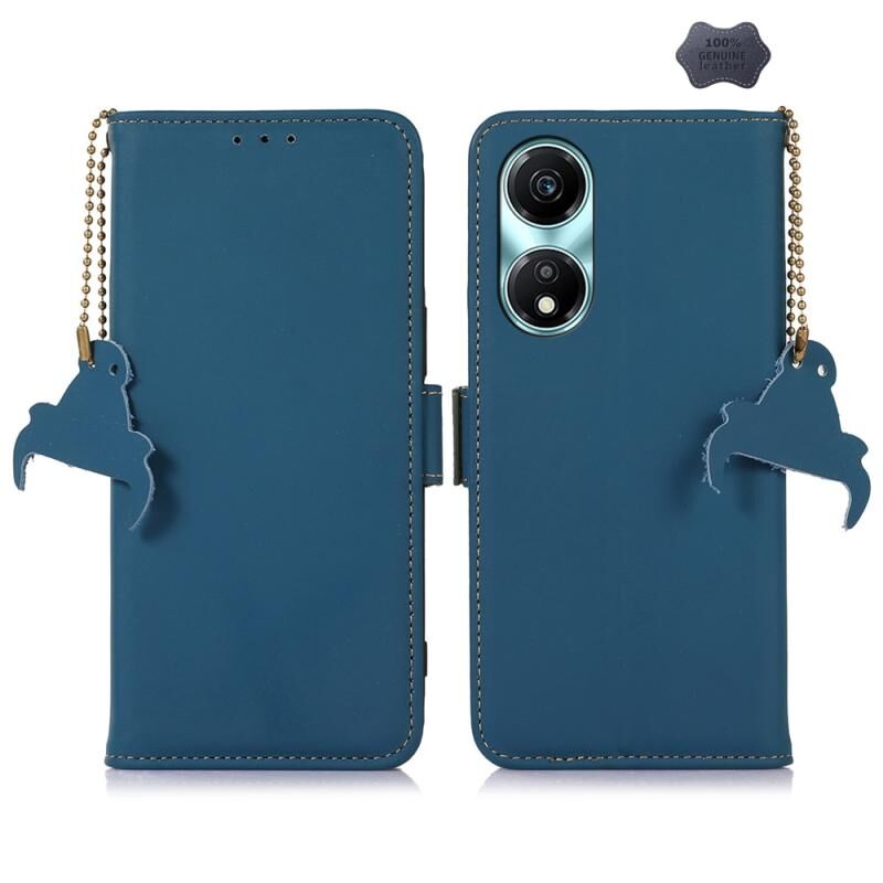 Θήκη τηλεφώνου από γνήσιο δέρμα με μαγνητικό κλείσιμο και προστασία RFID για Honor X5 Plus (Μπλε)