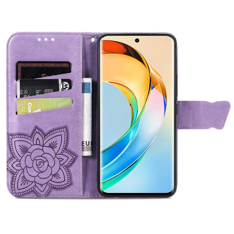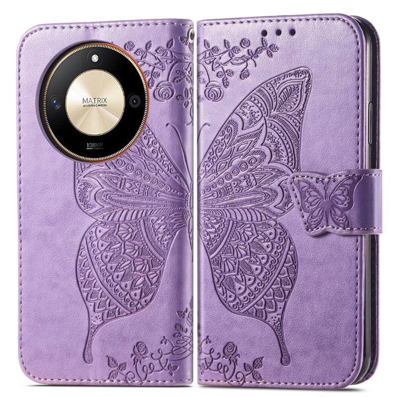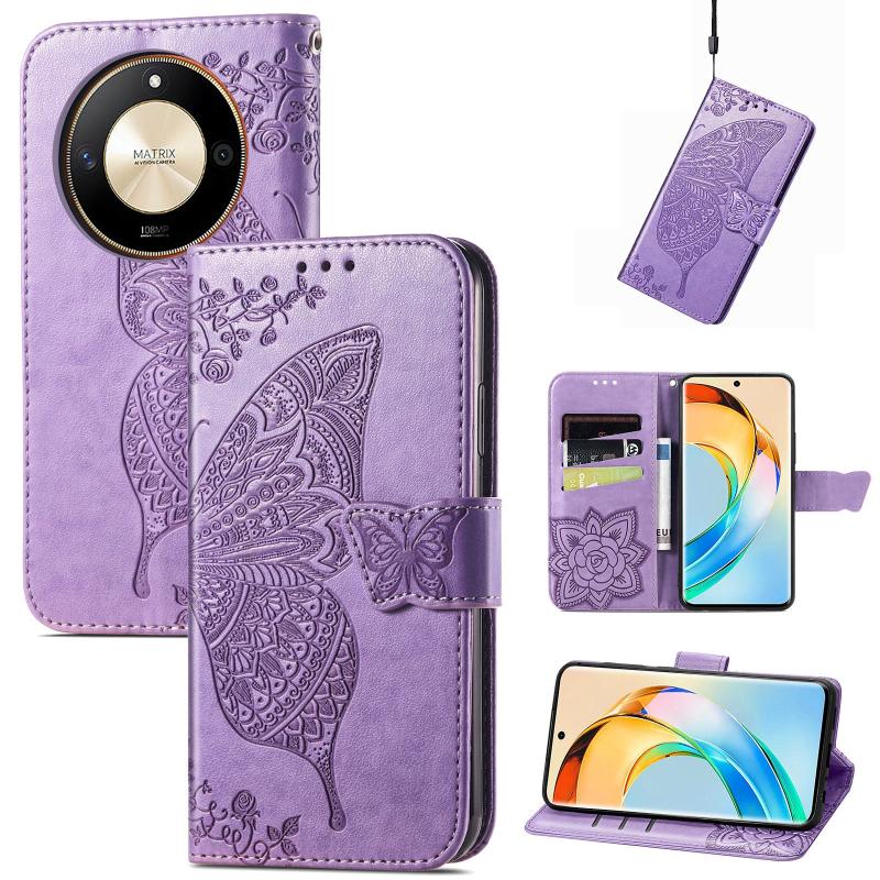 For Honor X50 Butterfly Love Flower Embossed Leather Phone Case(Light Purple)